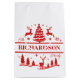Sac Cadeau Moyen Red White Christmas Nom de famille personnalisé