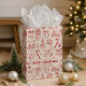 Célébrez la saison des Fêtes avec un sac cadeau de Noël personnalisé avec une toile de fond crème, de charmants dessins de doodle rouge festif, le joyeux salut 'joyeux noël,' et votre nom de famille. Ajoutez une touche spéciale à votre cadeau cette année.