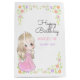 Sacoche cadeau d'anniversaire adorable pour enfant avec une jolie princesse mignonne avec robe et couronne rose, et cadre fleuri coloré.