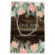 Ce sac cadeau rustique et tendance mariage vous remercie propose des fleurs d'aquarelle et des feuilles dans des tons doux de rose, pêche, blanc et bleu, avec un accent moderne de points faux or sur un arrière - plan de bois brun.