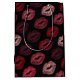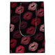 Make a bold statement with this stylish lip print gift bag, featuring an eye-catching pattern of red, pink, and rose-toned lips on a deep black background. This modern and confident design brings a chic, playful, and slightly edgy vibe to your gift presentation.