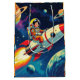 Sacs cadeau d'anniversaire mignons avec une bande dessinée rétro style illustration d'un petit garçon volant sur une fusée à travers l'espace !