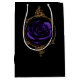 Un design sorcier gothique avec un rose violet foncé dans un cadre circulaire doré.