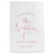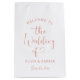 Les sacs cadeaux d'accueil en or rose moderne et en mariage blanc présentent un design typographique élégant avec un script de calligraphie chic et un accent du coeur. Le texte personnalisé simple et élégant qui peut être personnalisé avec les noms du couple et leur date de mariage.
