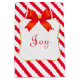 Beau ruban rouge et sac cadeau arrière - plan rayé blanc rouge. Le texte de la joie peut être personnalisé.