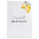 Surprenez votre demoiselle d'honneur avec ce sac-cadeau élégant, orné de citrons à l'aquarelle et d'un nom personnalisé. Personnalisez-le facilement en utilisant les options "personnaliser" et "éditer à l'aide de l'outil de conception".
