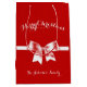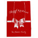 Sacs-cadeaux Joyeux Noël rouge, blanc et vert moyen avec arc et texte personnalisable
