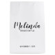 Script moderne Black and White Personnalisé Bridesmaids Sac cadeau avec nom de femme d'honneur personnalisée en calligraphie moderne style de police avec titre et date mariage dans le style de police sans serif moderne sur arrière - plan blanc. Aussi parfait pour Maid of Honor, Flower Girl, Mother of the Bride, Groomsmen, Best man et plus.