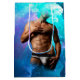 SlipperyJoe homme musclé sous-vêtements bulge coloris vibrants bleu turquoise violet nuage abstraction gay pride LGBTQIA rêve artistique énergie abstraite psychédélique surréalisme effet cosmique effet surréaliste et imaginatif main arrière - plan repose sur la poitrine