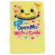This vibrant and playful gift bag is designed to spark excitement and joy. Featuring a cheerful smiling face with a zipper detail and colorful confetti accents, “Open Me, With a Smile” invites a fun and happy unboxing experience. Perfect for birthdays, party favors, kids’ gifts, and special celebrations filled with surprises.