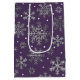 Sac Cadeau Moyen Snowflakes argenté violet Motif