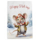Aquarelle souris de Noël avec en flocons de neige. Le texte est modifiable.