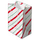 Sac cadeau de Noël d'inspiration sucre de canne avec des stirpes rouges et vertes.
