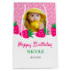 Faites cadeau de cadeau spécial avec notre Sweet Pink mignonne fraise fille photo Anniversaire moyen sac cadeau! Doté d'un design charmant d'une photo de fille d'anniversaire et de fraise sucrée, ce sac est parfait pour les anniversaires et autres occasions spéciales. Il est sûr de faire votre cadeau se démarquer dans le style!
