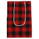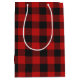 Sac cadeau moderne en plastique de buffle rouge pour les vacances ou tout événement. Ce sac de plaid festif est muni d'un motif de plaid de buffle rouge et noir.