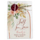 Célébrez la future mariée avec style avec ce sac cadeau de la douche de mariage "Fall in Love", mettant en vedette des tons chauds d'automne et des éléments de design élégants à l'aquarelle. Orné de délicates feuilles d'automne, y compris des plumes de faisan rustiques, de la verdure d'eucalyptus, de l'herbe de pampa séchée, des brindilles de feuilles d'or, et des accents floraux saisonniers tels que des roses roses tendres et des chrysanthèmes rouges bordeaux, ce sac chic capture parfaitement la romance de la saison. La palette de couleurs terreuses mélange des nuances d'orange brûlée, de jaune doré, de crème douce et de verts atténués pour un look intemporel et élégant. Conçu pour les douches de mariage, les mariages ou les fêtes de fiançailles, ce sac cadeau spacieux est idéal pour contenir des faveurs, des cadeaux ou des surprises pour la