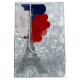 Sac Cadeau Moyen Tour Eiffel Pailletée Argent Fête Rouge Blanc Bleu