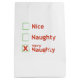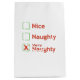 Trois cases à cocher vertes avec les mots Nice, vilains et très vilains en texte rouge à côté de eux, la boîte pour très vilain a été vérifiées avec un "X" Père Noël oh là là ! désolé !