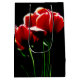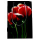 Trois belles tulipes rouges sur un arrière - plan noir.