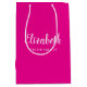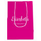 Sac cadeau moyen rose et blanc personnalisé avec texte de script de typographie élégant moderne pour femmes demoiselle d'honneur mariage enterrement de vie de jeune fille