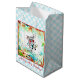 Sacoche cadeau bleu et blanc moyen à damiers brillant avec une Alice vintage au pays des merveilles image, à l'avant, du lapin blanc en toute élégance dans un jardin lunatique Wonderland avec une bordure rouge. Voir assortir grand sac cadeau, invitation à la carte, invitation au puzzle, enveloppe, confetti, sac de faveur, ballotin, étiquette de faveur carré, étiquette, autocollant carré et papier d'emballage. Voir l'ensemble de la collection de sacs cadeaux Wonderland dans les TOUCHES SPÉCIALES | Section Favoris.