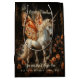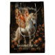 Ce sac cadeau de taille moyenne est doté d'une licorne magique aux ailes de papillon orange vibrantes, dans un bois d'inspiration renaissance avec un château de conte de fées en arrière - plan. Parfait pour envoyer un message d'encouragement réfléchi, célébrer un diplôme ou marquer un jalon spécial. Personnalisez-le en ajoutant du texte comme "Découvrez vos ailes" et un nom pour une touche unique et significative. Contactez-moi si vous avez besoin d'aide pour la personnalisation.