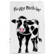Jolie vache caricaturale avec imprimé abstrait noir et blanc pour anniversaire