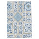 A seamless ornamental tile pattern featuring intricate blue floral motifs, geometric frames, and decorative scrollwork arranged in a classic European-inspired layout on a soft neutral background.