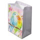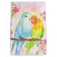 Sac Cadeau Moyen Watercolor Love Birds with Pink Flowers