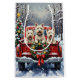 Brighten your holiday season with this adorable West Highland White Terrier Christmas design! This festive image features three snowy-white, cheerful West Highland White Terriers (Westies) enjoying a ride in the back of a classic red pickup truck, nestled in a picturesque snowy winter forest. The truck is charmingly decorated with a vibrant Christmas wreath, adorned with sparkling red and gold ornaments and warm, glowing lights. Soft snowflakes gently fall, creating a magical winter wonderland. With a decorated Christmas tree in the background, this design is perfect for capturing the joyful spirit of the holidays and makes an excellent Christmas gift for any Westie owner, dog lover, or admirer of festive dog breeds.