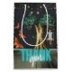 La vignette Whimsical présente une photo écolière vintage découpée sur balançoire avec guirlande étoilée, arbre fantaisiste, papillons et Merci en lettres néons