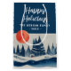 Winter Landscape Forest Navy Blue Red Moon Drawing Holiday Gift Bag. Calm winter snow landscape with forest. Happy holidays in a trendy script. Personalized the text or erase it.