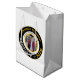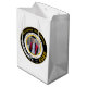 Graduation gift bag in black, white, and yellow — bold circular medallion design featuring graduate photo in circular frame, name arched above, college, city, class year, and "Graduate," available in black or white background. Perfect for party favors or presenting a special gift to or from the graduate. Part of a complete graduation collection including announcements, invitations, thank you cards, party invitations, enclosure cards, envelope seals, favor boxes, favor tags, yard signs, and banners. Fully customizable for your Class of [Your Year] celebration. Need design support? Email remidevandesigns@gmail.com RemideVan©