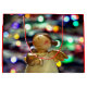 Sacoche cadeau de Noël avec petit ange tenant un ornement de coeur d'or devant l'arrière - plan lumineux de Noël multicolore ... c'est amusant et festif! ! Joyeux Noël à tous !
