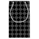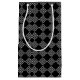 Ce sac cadeau en papier est affiché dans une impression de diamants noirs. Customisez ce sac ou achetez-le tel quel.