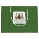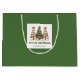 Sac cadeau d'arbre de Noël à l'aquarelle minimaliste avec un motif léopard ludique dans des tons de vert terreux et d'or. Personnalisez avec votre nom pour une présentation de cadeau de Noël élégante.