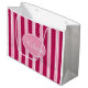 Des rayures de couleur bonbon rose et framboise ornent ce sac cadeau. Personnalisez ce mignon sac cadeau en changeant le nom. Ce sac est idéal pour un anniversaire, des vacances, Noël, etc...Le design est de l'art original.