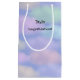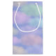 Présente des nuages doux et moelleux dans les couleurs arc-en-ciel sur un arrière - plan bleu. Personnalisez avec un nom et un message sur l'avant du sac cadeau.