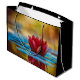 Un sac cadeau avec la photo d'un étang avec une jolie fleur de lotus rouge qui se dresse sur le dessus.