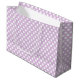 Ce sac cadeau en papier de grande taille est présenté dans un joli imprimé à points lavande et poka blanc. Customisez ce sac cadeau ou achetez tel quel.