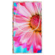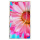 Une marguerite rose vif contre un arrière - plan bleu vif. Les côtés du sac sont décorés de pois à motifs couleur eau.