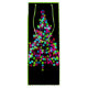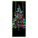 Les lumières d'un sapin de Noël forment un effet bokeh étonnant dans les tons rose, bleu, vert et violet sur le noir.