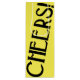 Offrez une bouteille de vin dans ce sac à vin Cheers Jaune Art Déco. Il comporte le mot "Cheers !" dans une police art déco contre un arrière - plan jaune.