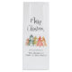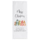 Elégant sac cadeau de vin d'entreprise pour vos clients d'affaires, clients et employés avec une aquarelle moderne de sauge vert, rouge, or et terracotta pins, "Joyeux Noël" dans un script élégant et votre nom d'entreprise dans la typographie simple.