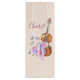 Un sac cadeau de vin qui dit Cheers! Un design féminin doux. Illustré d'une aquarelle représentant un violon en bois, des pantoufles de ballet rose se reposent contre elle et sont décorés de fleurs et de papillons. Placez-vous sur un arrière - plan rose pêche.