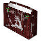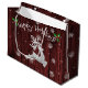 Sachez vos cadeaux de Noël avec ce sac cadeau fantaisiste et festif Red Rustic Reindeer. Le design des sacs-cadeaux comprend un arrière - plan en bois rouge rustique avec un renne de Noël orné de flocons de neige en chute. Autres cadeaux et objets de vacances disponibles avec ce design aussi.