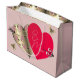 Sac Cadeau Rose rose et bronze Coeur Saint Valentin Grand