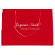 Un sac cadeau rouge en français et en anglais pour célébrer Noël. Le rouge utilisé sur ce sac est une couleur rouge de Noël qui le rend très festif et Christmassy !