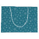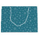 Sac cadeau avec des flocons de neige imprimé sur arrière - plan bleu.