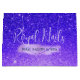 Beau et attrayant Chic Parties scintillant SPA Nail Salon Maquillage Hair Bag est conçu pour aider votre entreprise à se démarquer! Fonctionne avec arrière - plan scintillant dans les tons de violet vibrant et de texte personnalisable. Ce sac cadeau boutique professionnel est parfait pour le salon de ongles, la technologie de l'ongle, le maquilleur, le spa, le salon de coiffure, la boutique d'affaires et plus encore!
